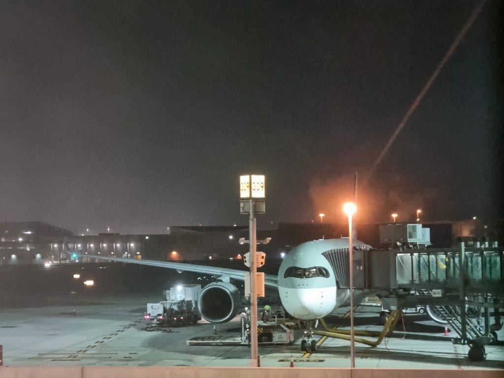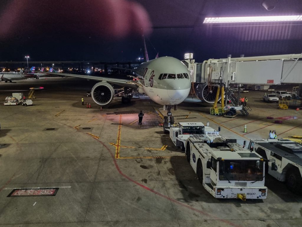Toen begon de vlucht van DFW naar Doha, Qatar. Dit is een vlucht van bijna 13.000km, die 14u duurde. Omdat we om 11u ’s avonds vertrokken, hebben de kinderen gelukkig aan het begin een aantal uur geslapen. We zijn blij hoe goed de kinderen de lange zit hebben doorstaan! Zelfs Wout heeft de hele reis geen één keer een keel opgezet! We zijn zeer te spreken over Qatar Airways: prettig toestel, aardig personeel en goede foodservice.