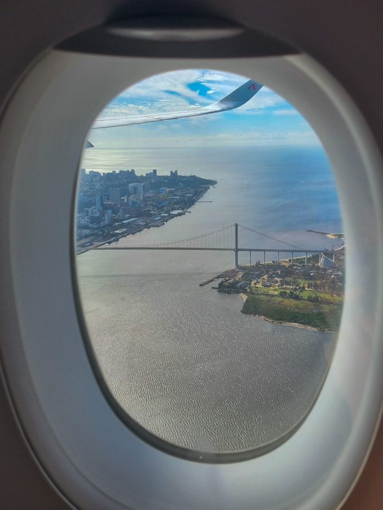 Na een overstap van ruim 3 uur zaten we aan boord van de volgende vlucht: naar Durban met een tussenstop in Maputo, Mozambique. We vertrokken om half 2 ’s nachts (plaatselijke tijd) in Doha, en zagen de zon opkomen in het vliegtuig, erg mooi. Rond 5u passeerden we de evenaar en kwamen we voor het eerst in ons leven op het zuidelijk halfrond. Na 7,5u landden we op Maputo. Na een korte stop was Durban de eindbestemming. Het was schitterend om de kustlijn van Zuid-Afrika te zien.