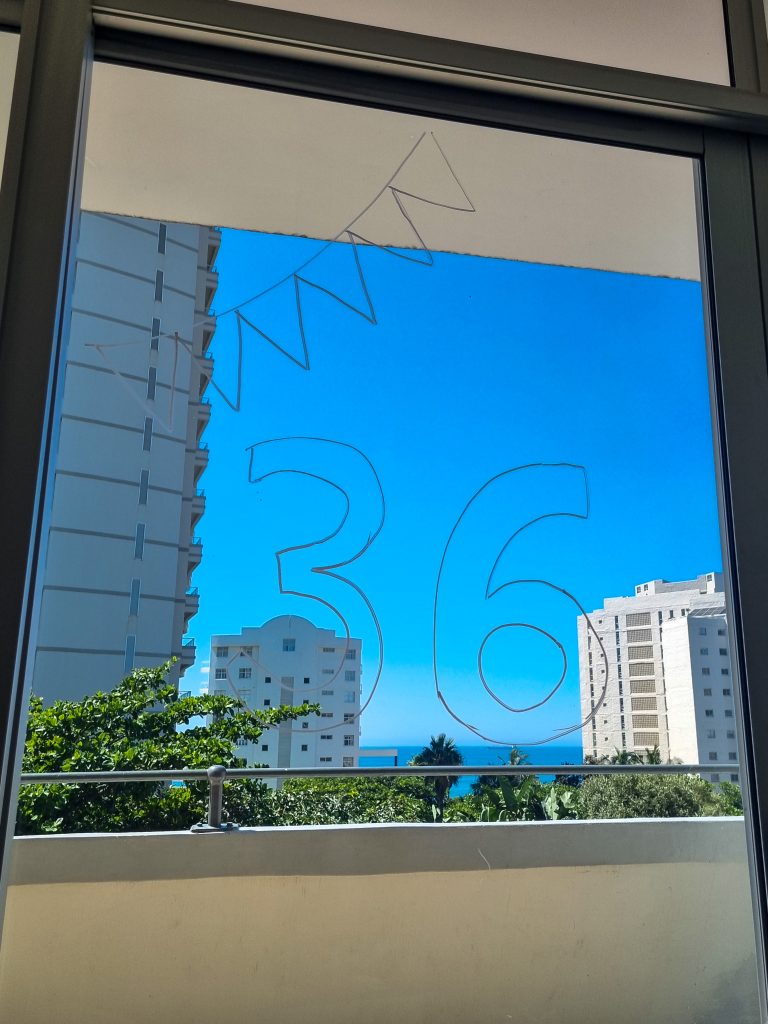 Na een reis van 35u kwamen we aan bij ons appartement. We hebben zicht op de Indische Oceaan! De komende dagen staan in het teken van acclimatiseren. We hebben last van een jetlag (9 uur tijdsverschil met Texas) en wennen aan de temperaturen (30+ graden!). Vandaag vieren we Liesbeths 36e verjaardag. Met wat improviseren is het gelukt om ’s morgens koffie met gebak te regelen. Morgen staat een bezoek van mij aan het schip in het droogdok gepland en hebben we ’s avonds een Zuid-Afrikaanse Braai (barbecue) om de school te zien en het schooljaar te openen met de Academy en alle gezinnen die hier zijn